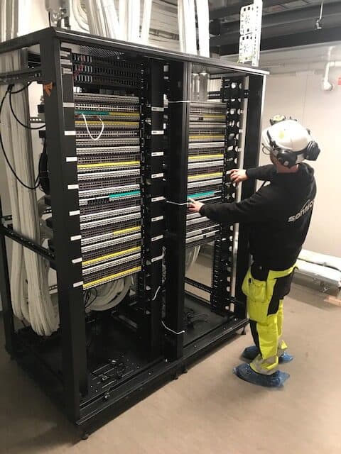 - Installasjon av rack og nettverksutstyr: Vi monterer og konfigurerer rack, nettverksswitcher, aksesspunkter og annet nettverksutstyr – både i ordinære nettverksrom og dedikerte datarom.